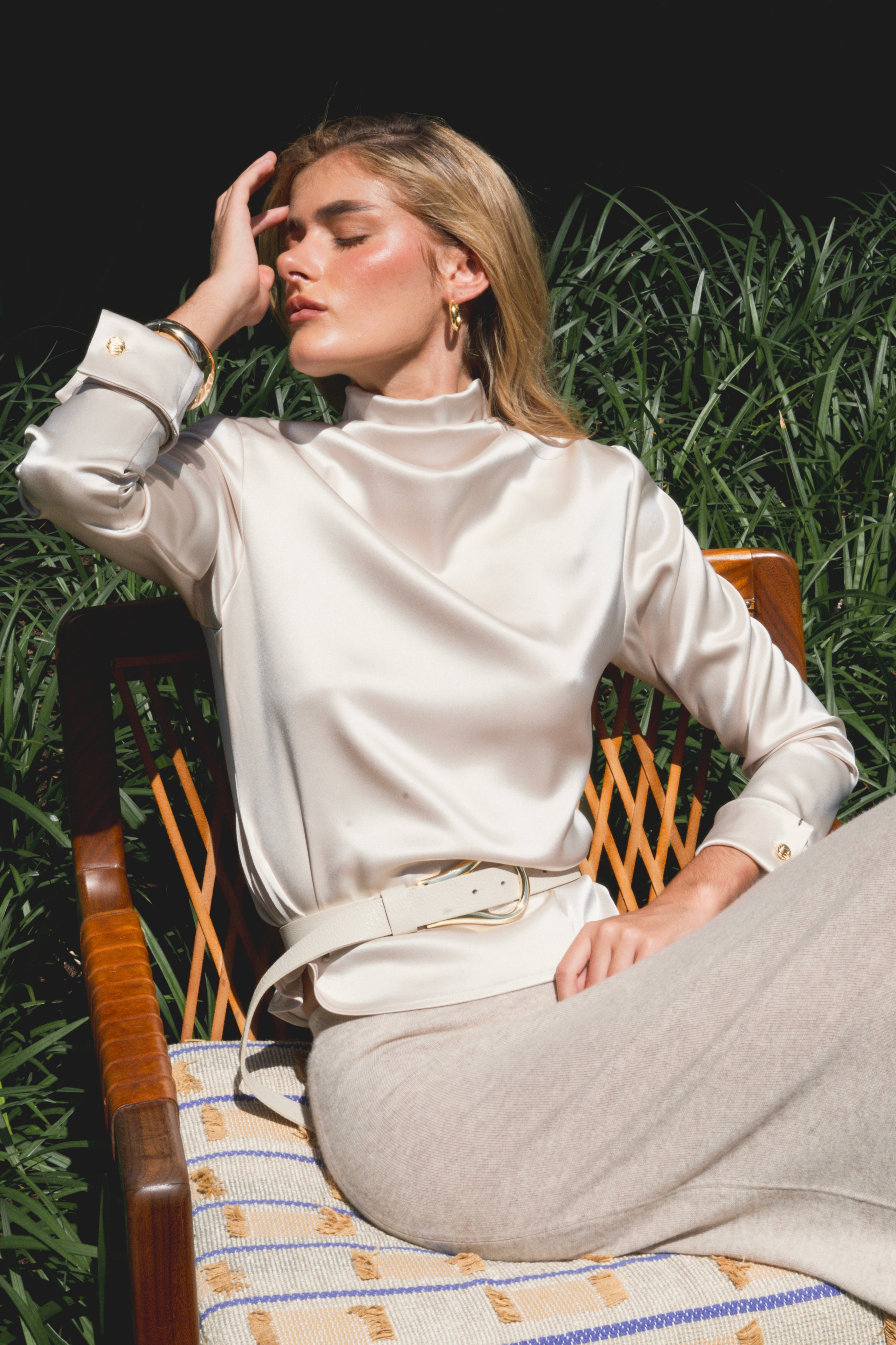 Elevate your wardrobe with this silky-soft and versatile satin top.